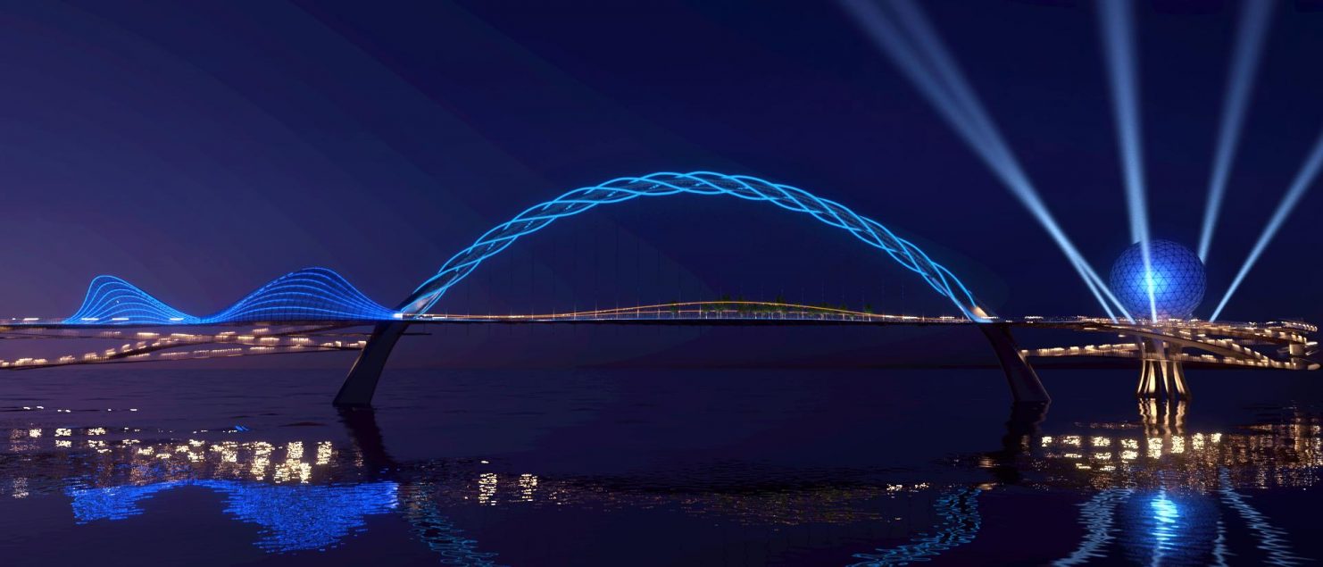 Hài hòa với không gian kiến trúc cảnh quan khu vực xung quanh. Cầu đi bộ bắt qua sông Sài Gòn do Kidohu thiết kế hứa hẹn không chỉ mang lại một tác phẩm nghệ thuật trên không gian mặt nước, mà còn là nơi vui chơi giải trí kết hợp với sức chứa 4300 người, mang trong mình biểu tượng hòn ngọc viễn đông. Kết nối giữa trung tâm thành phố hiện hữu với khu đô thị mới Thủ Thiêm, nối phố đi bộ Nguyễn Huệ và công viên bờ sông Bạch Đằng với Quảng trường Thủ Thiêm ( Quảng trường lớn nhất Việt Nam).